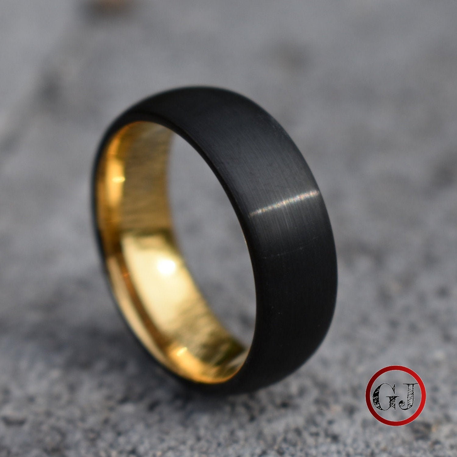 Black Brushed 8mm Tungsten Ring With Gold Inner Band Mens Etsy
